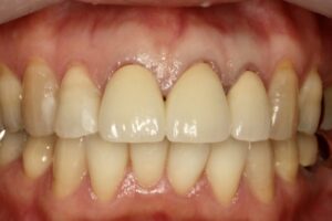 また、一部に欠けや適合不良も認められ、天然歯との色調の差が目立つ状態でした。