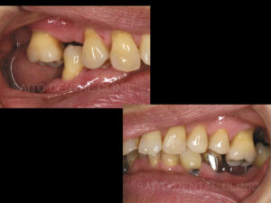 お口の中を見せていただくと奥歯が抜けてしまっており、残っている歯も歯周病が重症ですが、ここで見落としてはいけないのが噛み合わせです