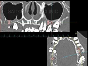CTをはじめインプラントに必要な検査を行い、安全な治療をすることが確認できたのでインプラント治療を行い、いったんインプラントには仮歯を装着し、それを利用して歯列矯正治療を行なっていきます