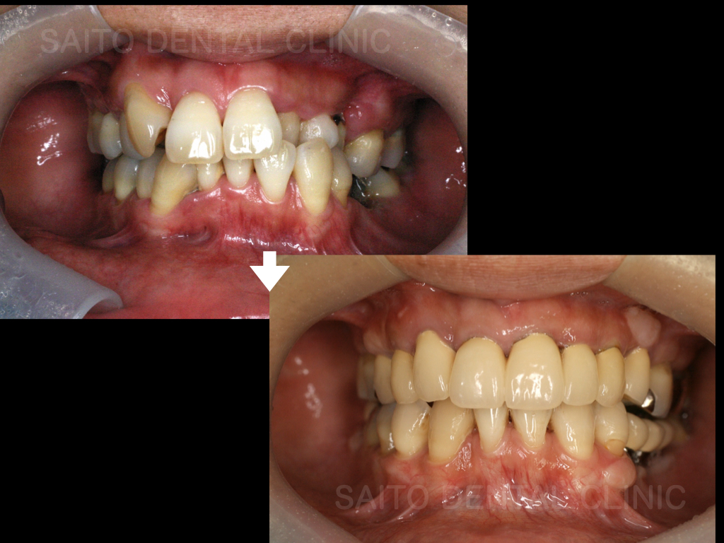 歯周病や虫歯、欠損、歯並びを包括的に治療した症例(難症例)