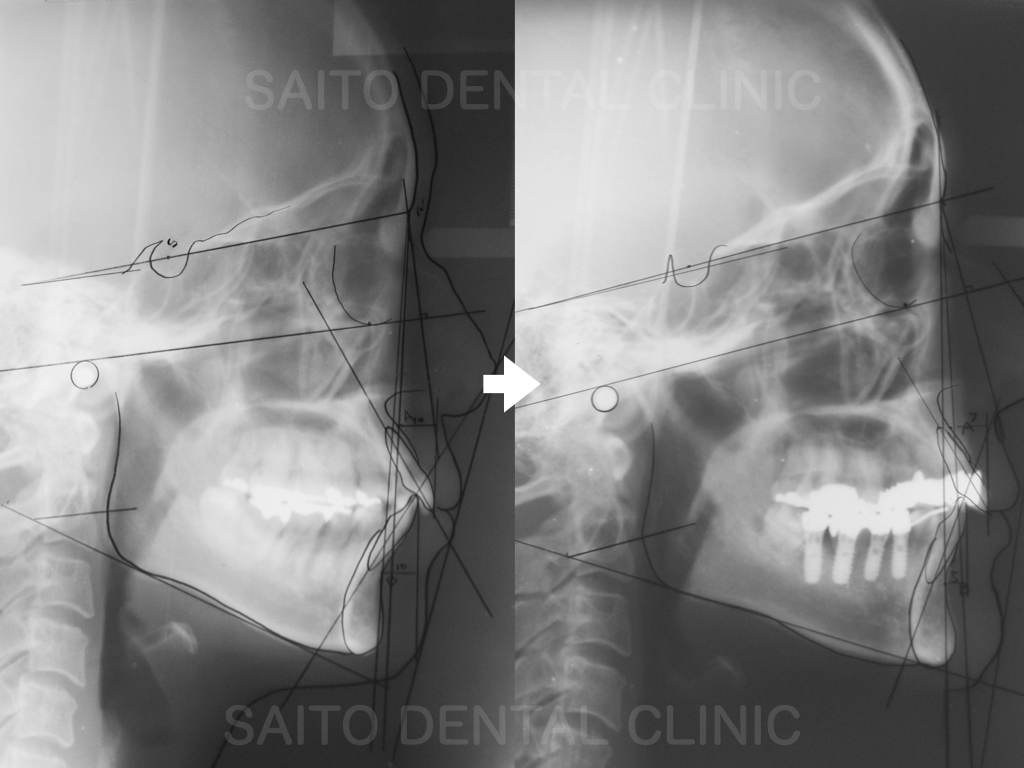 矯正治療により鼻と顎の先を結ぶエステティックラインの内側に唇が位置することによりすっきりとして理想的な口元にすることができ横顔が美しくなりました