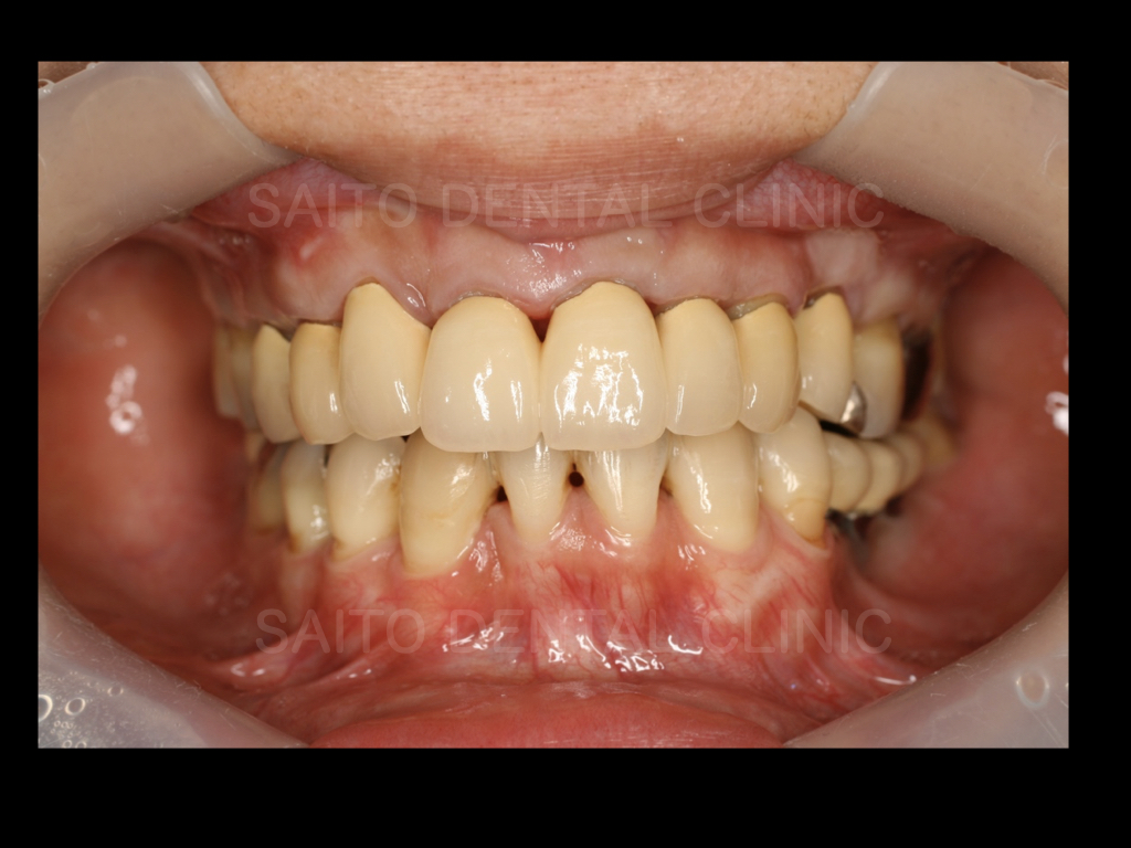 下のインプラントと上の前歯に最終的な被せ物をしました
