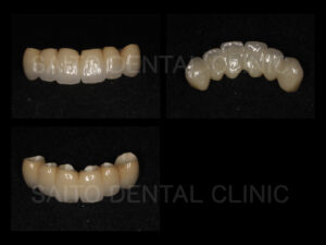 被せ物は強度のあるジルコニアにセラミックを焼き付けて下の歯の色に合わせて製作することによって