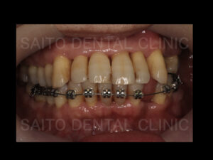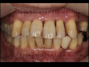 全体的に歯がグラグラしており、特に前歯が前に出て、歯と歯の間にすき間が目立つ状態でした。