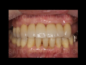 セラミックの被せ物は変色はありませんが時間と共に削れたり欠けたりする可能性があります 今回保存した歯周病だった歯やインプラントは患者さんのメインテナンス状況や健康状態によって再度歯周病が進行する可能性があります
