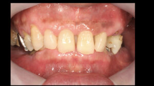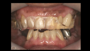 奥歯が壊れるに従って噛み合わせの高さも失われて下の前歯が上の顎に刺さってしまうような状態です