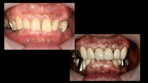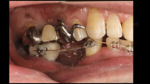 矯正治療後インプラントに被せ物をし、上の顎は予算を相談し部分義歯を装着しました