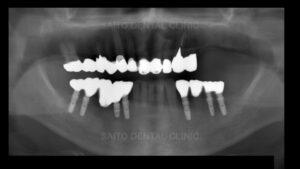 歯茎の面積が狭いため(真ん中に舌があるため)全部インプラントにしていくのが理想ですが